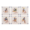 Set of six old Dutch hand painted Makkum ceramic tiles by Royal Tichelaar featuring scenes of equestrian cavaliers.