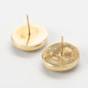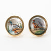 Pair of oval Essex glass stud earrings in 18k gold bezel backed with Mother of Pearl. The reverse intaglio carving in cabochon rock crystal is of a mallard duck and pheasant painted in reverse with detailed backgrounds.