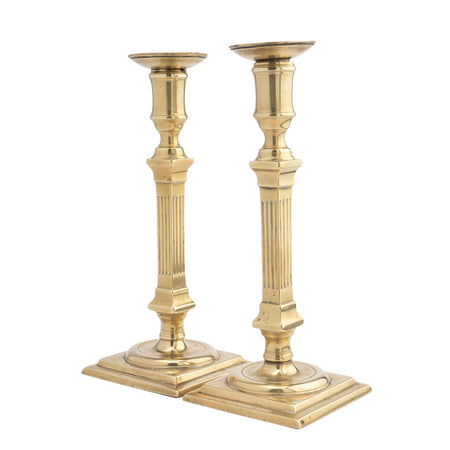 Pair of George III cast brass columnar candlesticks (1790-1800)