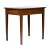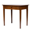 French walnut table on square tapered legs with a two board rectangular top framed by an applied ogee molding. The top is fitted onto a conforming apron with a wide shallow drawer.