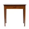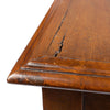 Condition: All surfaces have been cleaned and polished. The wood shows extensive signs of worm damage throughout. There is a stabilized shrinkage separation in the right front corner as well as one that runs the width of the table at the back. The inside front of the drawer shows signs from a previous ink spill. Wear commensurate with age and use.